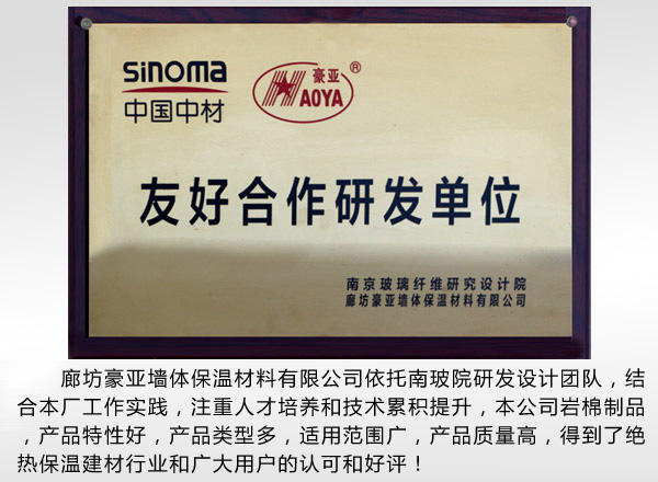 公司現(xiàn)有員工160多人,研發(fā)設(shè)計(jì)、工程技術(shù)人員20多人。2011年以來,在習(xí)近平同志“綠水青山就是金山銀山”的環(huán)保理念指引下,公司依托南玻院研發(fā)設(shè)計(jì)團(tuán)隊(duì),結(jié)合本廠實(shí)踐經(jīng)驗(yàn),創(chuàng)新、設(shè)計(jì)、提升,我們的產(chǎn)品在同行業(yè)中樹立了良好的口碑,得到了同行業(yè)和廣大用戶的認(rèn)可。我公司現(xiàn)有生產(chǎn)能力年產(chǎn)10萬噸節(jié)能環(huán)保巖棉生產(chǎn)線4條,在絕熱節(jié)能行業(yè)中具有先進(jìn)的生產(chǎn)技術(shù),產(chǎn)業(yè)規(guī)模和環(huán)保節(jié)能優(yōu)勢。可靠的品質(zhì),完善的服務(wù),快捷的物流保障,使豪亞品牌覆蓋全國各省、自治區(qū)、直轄市,廣泛應(yīng)用于雄安新區(qū)、陜西西安工業(yè)大學(xué)、山東省齊河力源熱電、鄭州航空港、北京醫(yī)科大學(xué)、河北省神威藥業(yè)、燕郊樂天瑪特、農(nóng)業(yè)特色種植、城市綠化等工程項(xiàng)目,并出口非洲、俄羅斯、韓國、馬來西亞等東盟國家。此外,公司與天津固克節(jié)能科技有限公司、北京富思特新材料科技股份有限公司、亞士創(chuàng)能科技(上海)股份有限公司、北京奧克森節(jié)能環(huán)保科技有限公司、河北金舵巖棉制品有限公司、京華通河北新型建筑板材有限公司、北京東方誠鼎板材有限公司、多維綠箭科技(天津)有限公司等幾十家裝飾一體板、結(jié)構(gòu)一體板、彩鋼夾芯板企業(yè)結(jié)成加工制作戰(zhàn)略...【查看更多】
